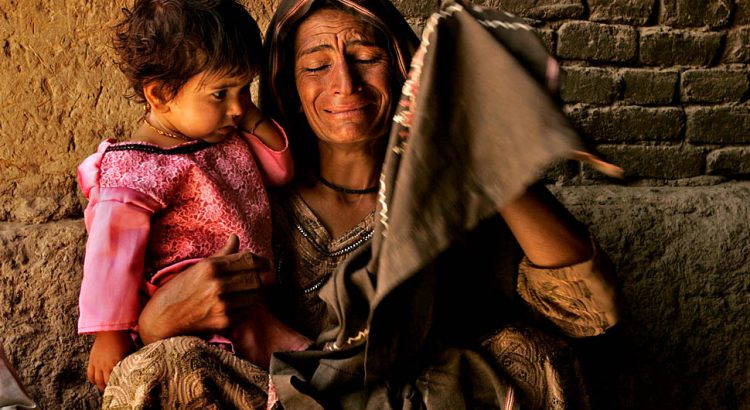 Heart Breaking Picture of mother with her child in hand, crying for day to day necessities.